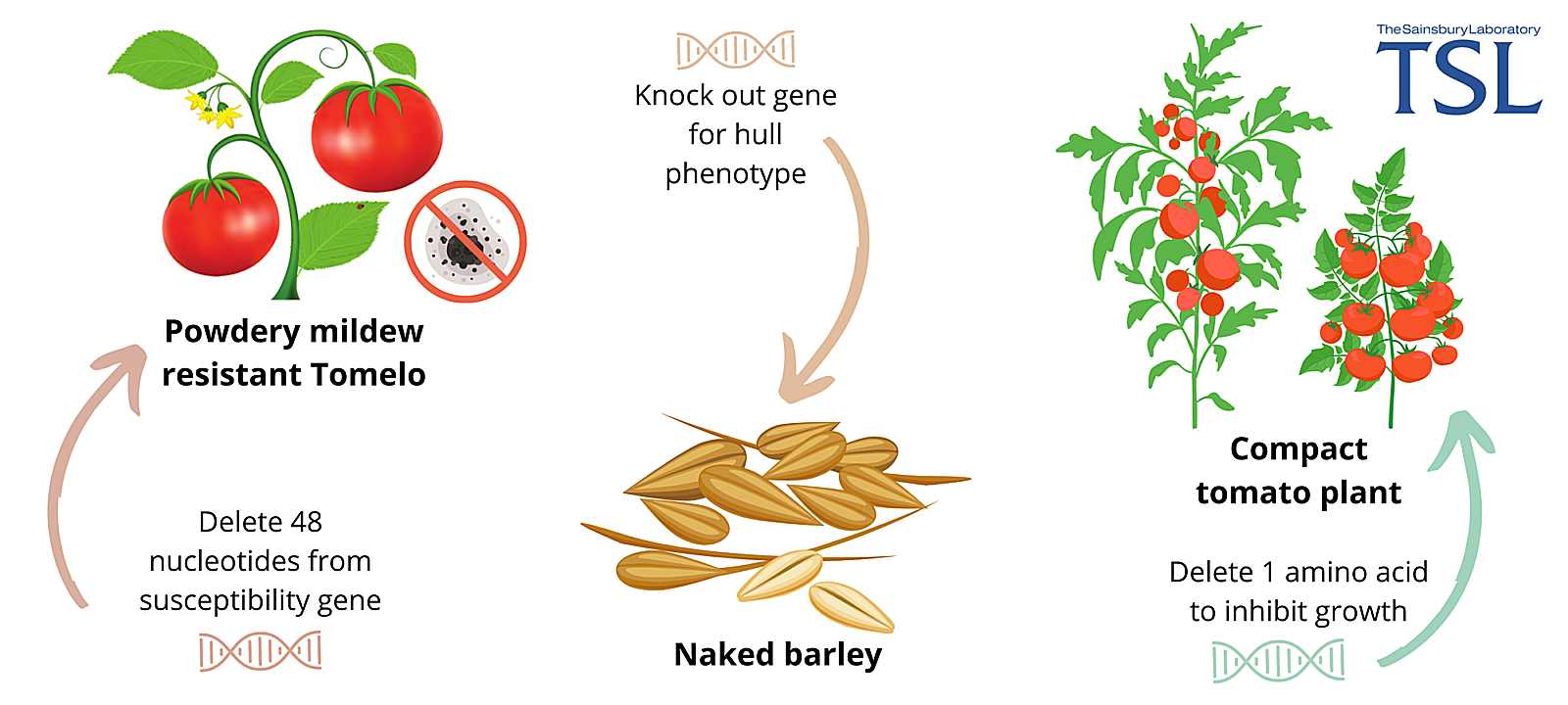 Examples of how TSL scientists have used gene editing to improve crop traits.