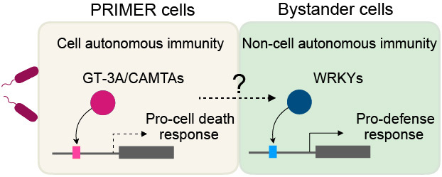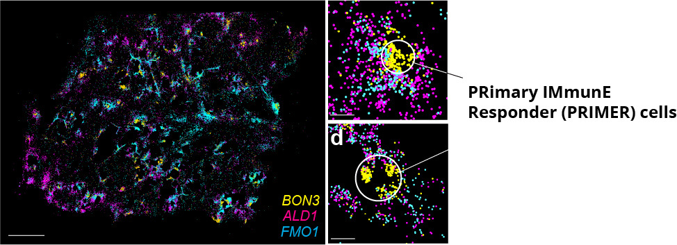 Surrounding the PRIMER cells, another cell state, termed bystander cells, was identified. These cells activate genes involved in long-distance cell-to-cell signaling, potentially helping to spread immune responses across the leaf.